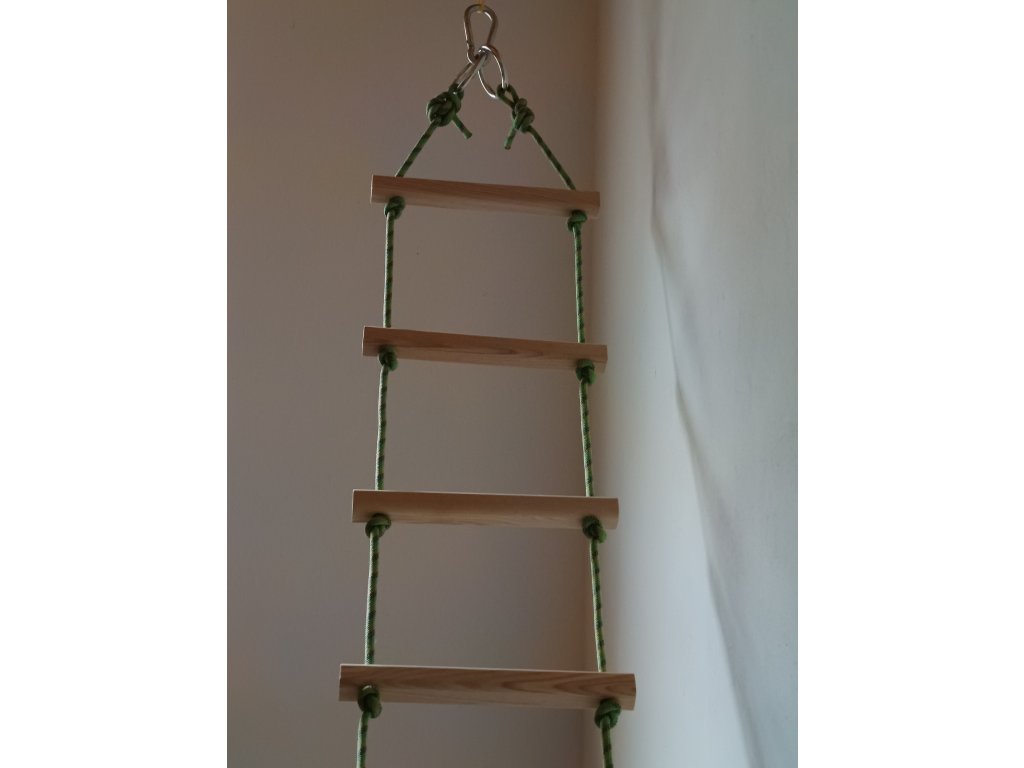 Lanový žebřík s kvalitními příčkami z masivu. Vhodný jako součást dětského hřiště. Bukové dřevo má základní impregnaci proti plísni a hnilobě. 5 příček na metr délky.