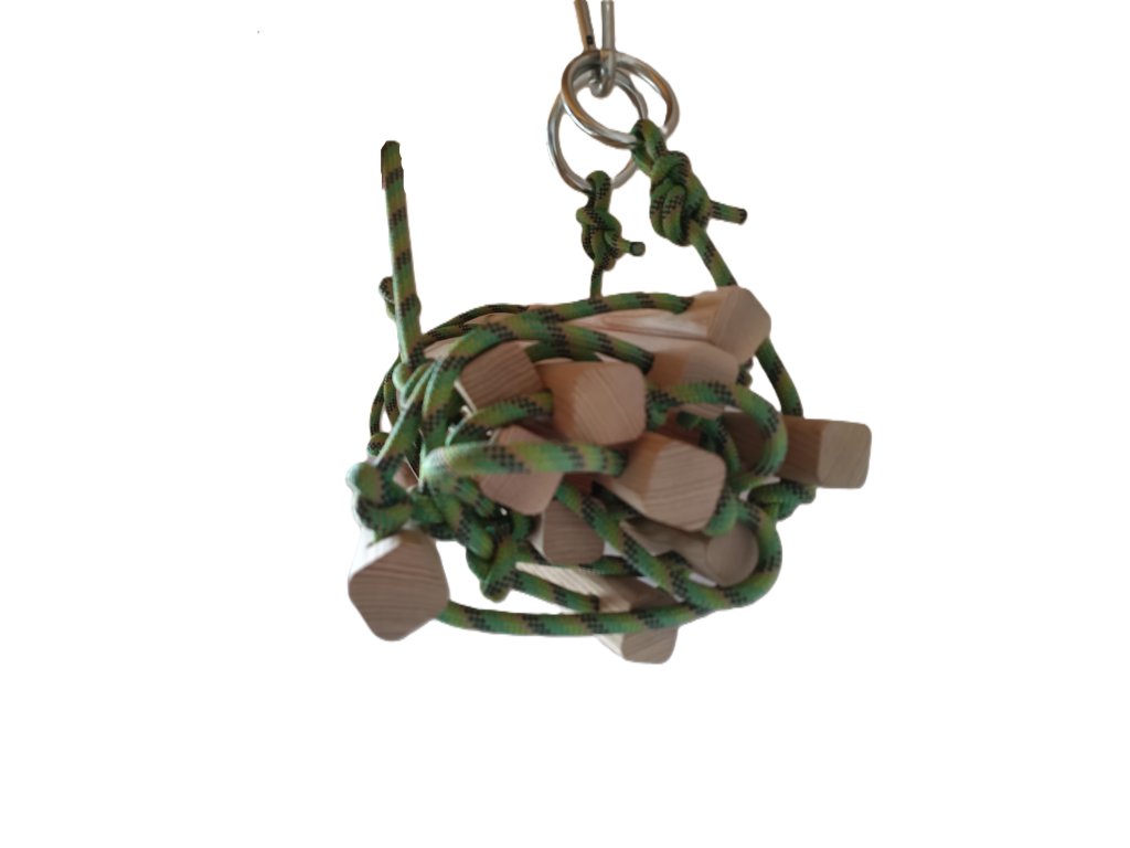 Lanový žebřík je zakončený kroužky pro snadné zavěšení. Hranaté příčky jsou z kvalitního bukového dřeva. Vhodné pro pohybové a volnočasové aktivity s dětmi od 3 let. Lze využít ke šplhu i ke hře, jako tzv. houpací prvek. Délka žebříku je vzdálenost středu oka kroužku po poslední příčku (tol. +-5cm).