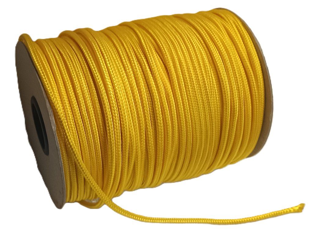 Žlutá (lesklá) polyesterová HT šňůra pr. 5mm s výplní (PES). 100m cívka